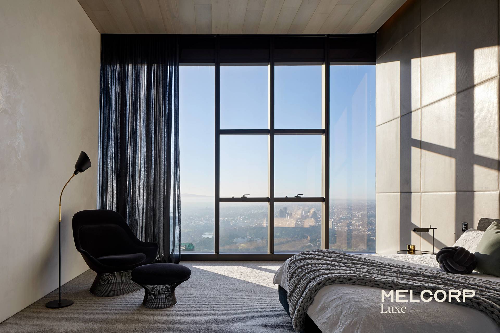 You’ll be utterly awe-struck the second you step inside this 65th floor apartment, with the enormous and free-flowing central living and dining zone promising sublime flooring, incredible natural light, towering ceilings, designer lighting, and floor-to-windows which act as a frame for the spectacular views. These breathtaking views surely cannot be beaten anywhere in Melbourne, and take in the surrounding tall CBD buildings and mountain ranges in the distance.